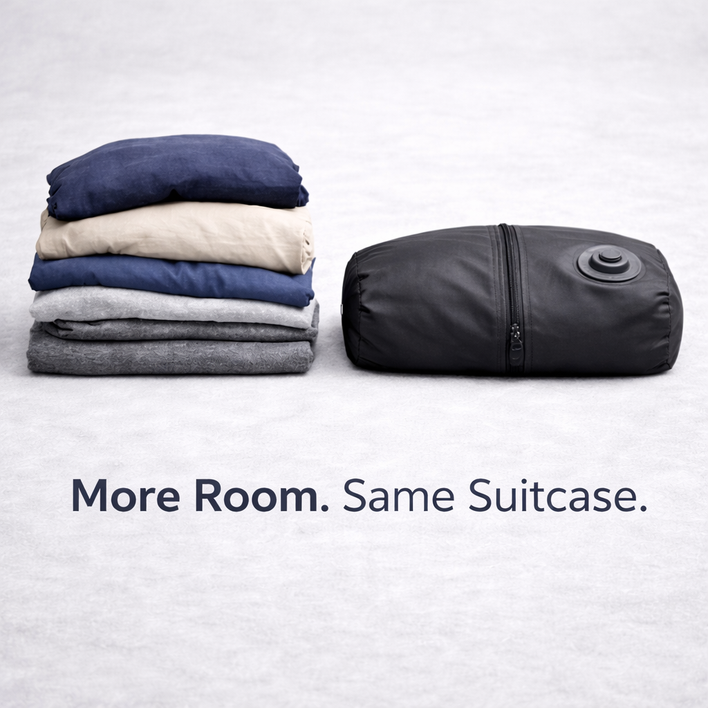 Maximize your luggage space and stay organized wherever you go. The FlyReady Compression Bag removes excess air to reduce bulk, allowing you to pack up to three times more while keeping your belongings protected. Its durable, waterproof construction shields your clothes from spills and moisture, and the built-in air valve allows for quick, easy compression without the need for a pump. Designed to fit perfectly in carry-ons, backpacks, and suitcases, it helps you travel lighter and avoid unnecessary baggage fees.